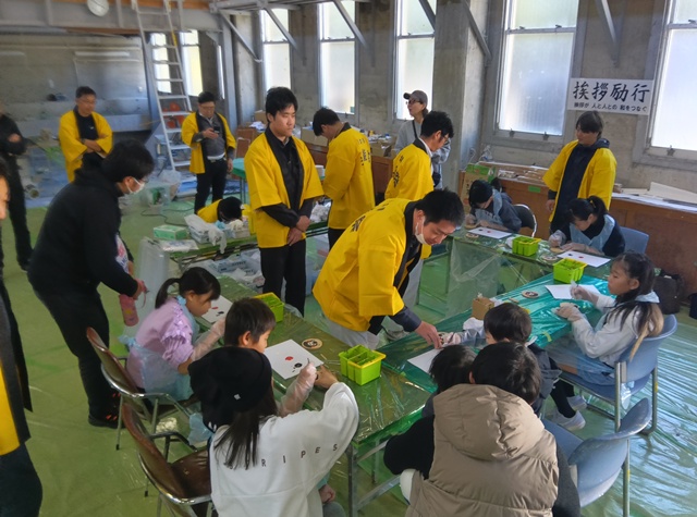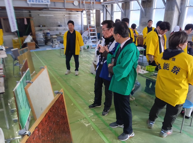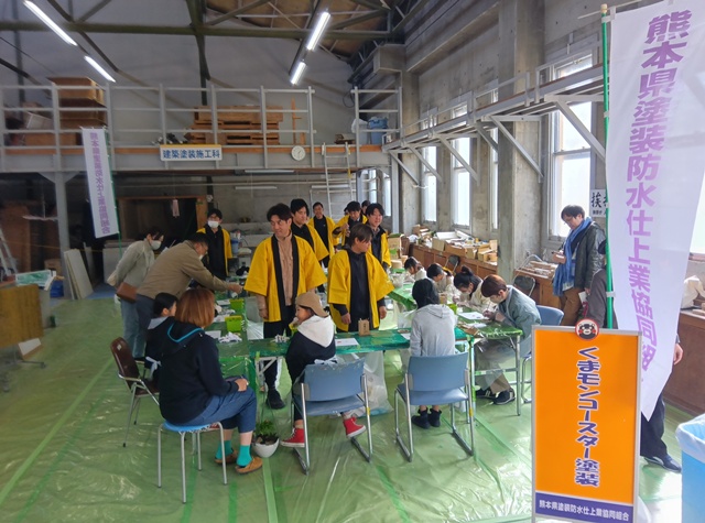 2024年11月 イベント 塗装組合 技能フェアin熊本市職業訓練センターについて 2024年11月23日 Facebook Twitter はてブ Pocket Feedly 2024年11月23日 くまもと技能祭((一社)熊本県技能士会連合会主催)が熊本市職業訓練センターにて開催され青年部 8名及び製販装 8名の16名にて、親子連れにものづくりの楽しみを味わってもらいました。 また、同会場において全技連マイスターの展示が行われ当組合理事長 落合三郎氏の作品展示に合わせ、作品の解説を行い、来場者に技能の難しさ、楽しさを伝えていました。 Facebook Twitter はてブ Pocket Feedly