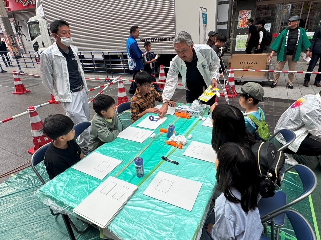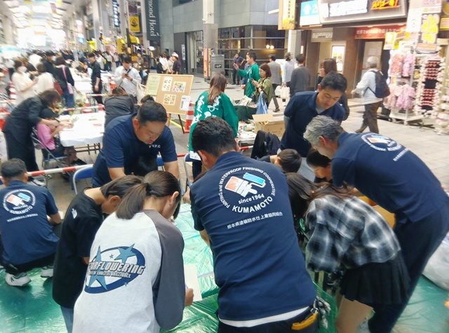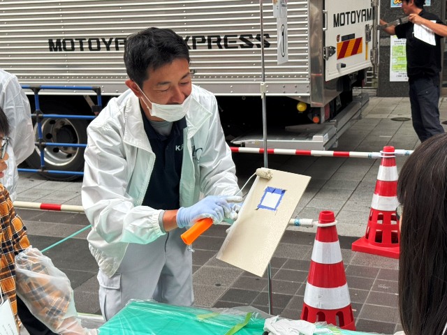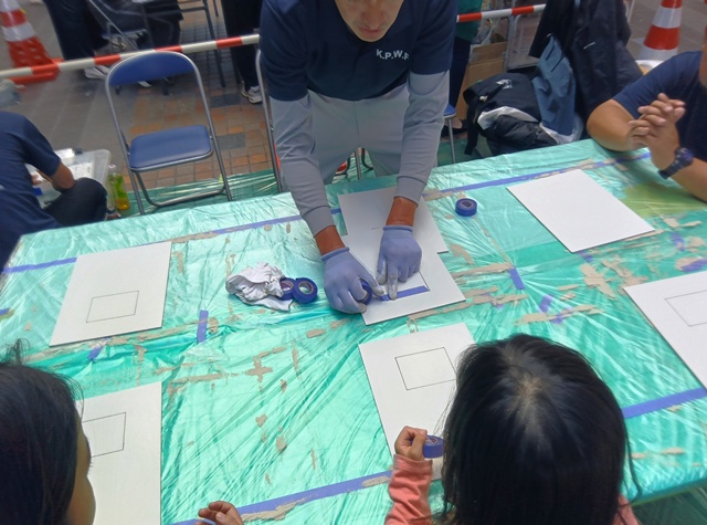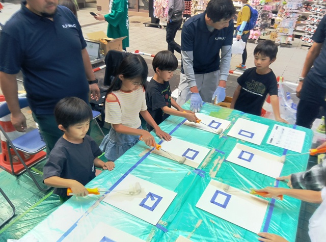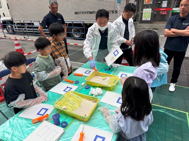 2025年10月25日 熊本県塗装防水仕上業協同組合では、新市街アーケード特設会場にて開催された第6回 グッジョブやるキッズ(こどもおしごと体験イベント)に出展しました。このイベントは、くまもと中小企業魅力発信委員会が主催となり熊本信用金庫、(一社)熊本県中小企業同友会、熊本市新市街商店街振興組合が共催となり開催されたもので、子どもたちの「やってみたい!」「おもしろうそう!」をきっかけに様々な企業のおしごと体験を通じて、仕事のやりがい、楽しさ、難しさ、そしてお金の流れを知ってもらおうと企画されたものです。