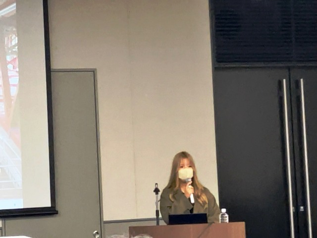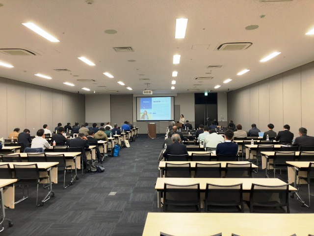 第1部では、日綜産業(株)クイックデッキ事業部 主任 川田有紀様による「クイックデッキ」&熱収縮養生シート「クイックラップ」の説明がありました。