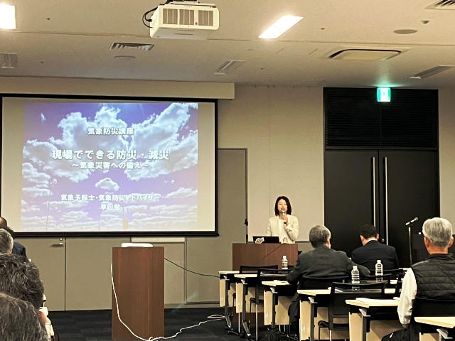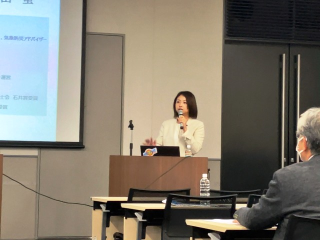 第2部では、気象予報士 早田蛍様を講師に迎え「現場でできる防災・現災害~気象災害への備え~」と題し、ここ数年の集中豪雨への対応や熱中症対策について話がありました。また、前日に発生した地震や九州北部豪雨等の喫緊の課題等の説明があり、参加者は、対策・対応について考えておりました。
